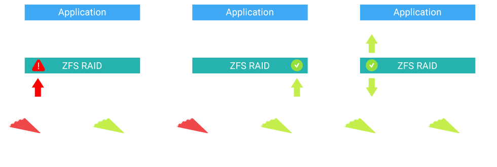 ZFS одновременно поддерживает кэш чтения из основной памяти (L1 ARC), кэш чтения второго уровня SSD (L2 ARC) и ZFS Intent Log (ZIL) для синхронизации транзакций. L1 ARC работает в совокупности с L2 ARC, что повышает производительность и минимизирует количество обращений к диску. ZIL полезен для приложений с большими рабочими нагрузками синхронной произвольной записи, таких как базы данных, поскольку информация сначала будут записана в ZIL, а затем в хранилище, что помогает уменьшить задержку и улучшить производительность записи.